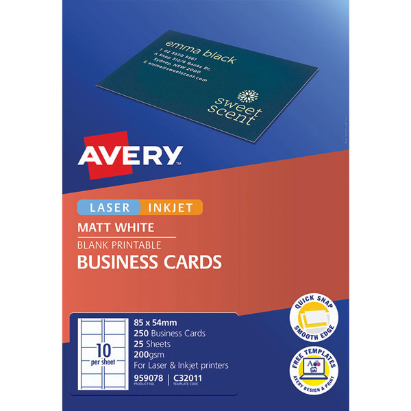 AVERY 959078 C32011 QUICK CLEAN BUSINESS CARD 200GSM 85 X 54MM WHITE PACK 250