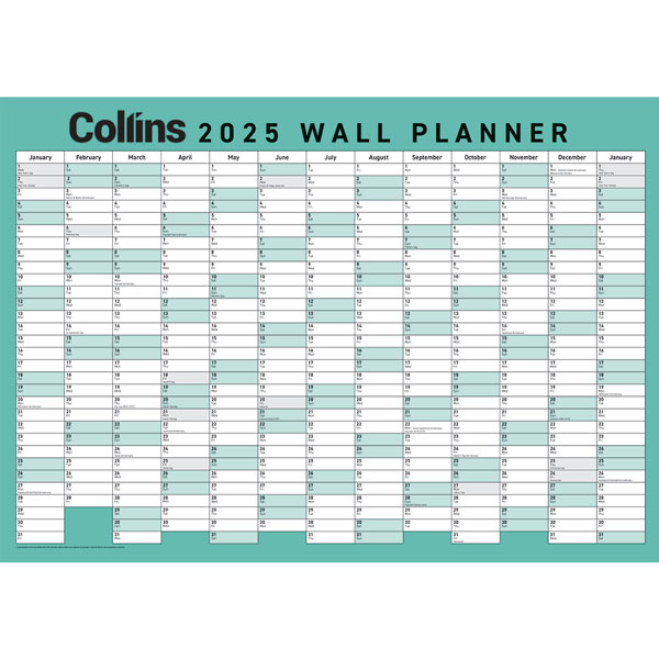 Collins 13 month to view odd year wall planner.