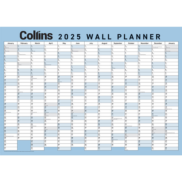 Collins 13 month to view odd year wall planner.