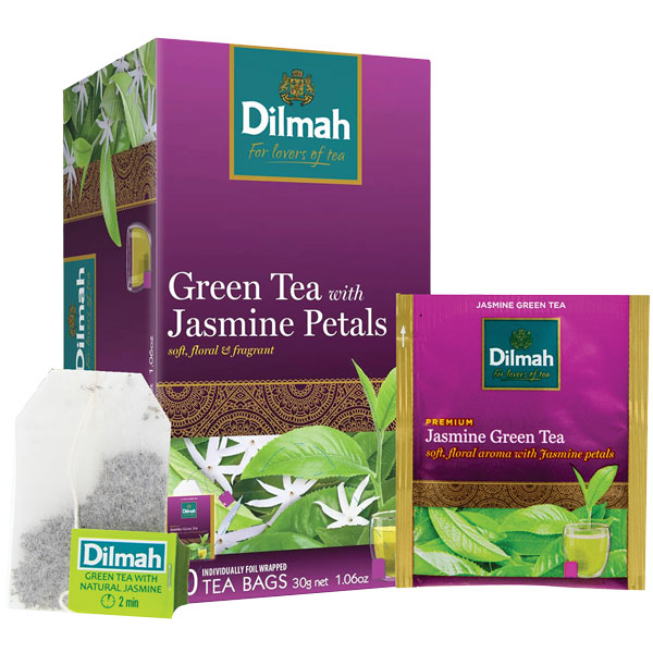 DILMAH TEA BAGS JASMINE GREEN INDIVIDUALLY FOIL ENVELOPED BOX 20