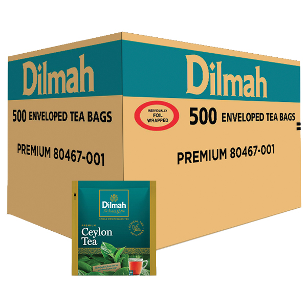 DILMAH TEA BAGS PREMIUM REGULAR INDIVIDUALLY FOIL ENVELOPED BOX 500