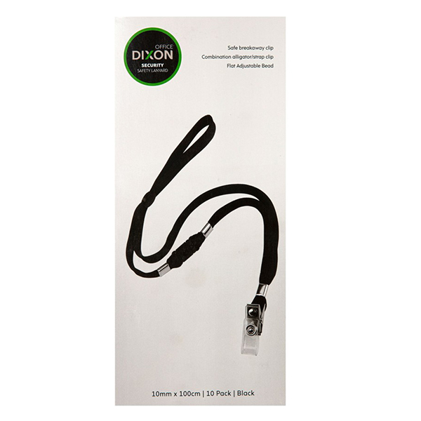 DIXON LANYARD FLAT STYLE WITH ALLIGATOR AND BREAKAWAY CLIP BLACK PACK 10
