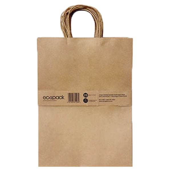 ECOPACK TWISTED HANDLE PAPER BAGS MEDIUM W260 X H360MM PACK 25