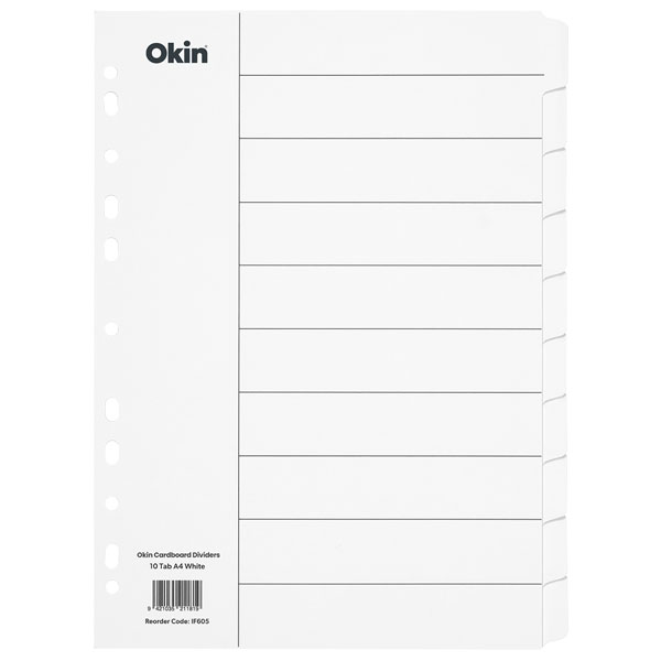 OKIN CARDBOARD DIVIDERS 5 TAB A4 WHITE