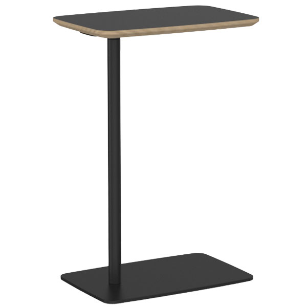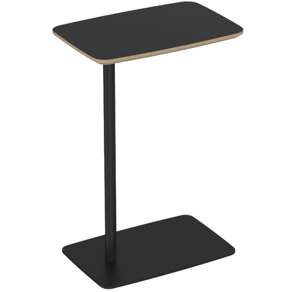 Cubit side table with a horizontal rotating 300mm x 450mm top and black powdercoat base with flat foot.