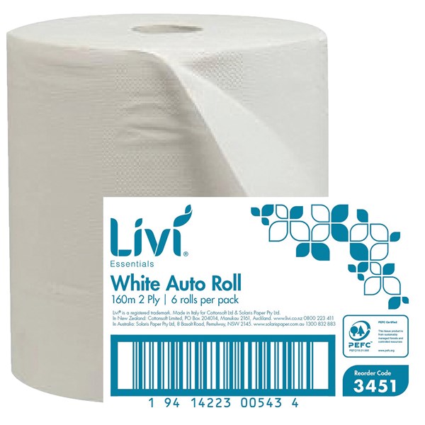 LIVI ESSENTIALS 3451 PAPER TOWEL ROLL AUTO 2 PLY 160M CARTON 6