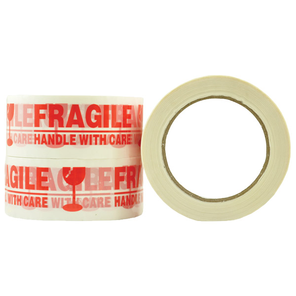 MESSAGE TAPE FRAGILE HANDLE WITH CARE RED ON WHITE 48MM X 100M