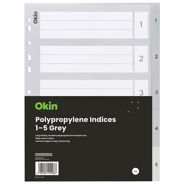 OKIN PP INDICES 1-5 TABS A4 GREY