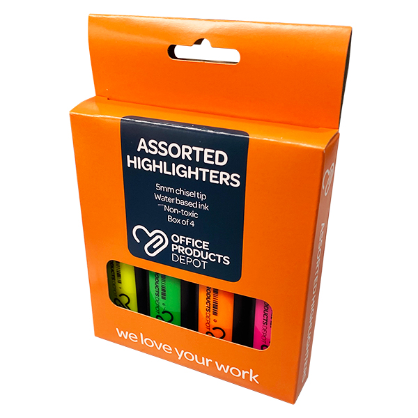OPD HIGHLIGHTER CHISEL ASSORTED PACK 4