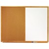 Quartet oak frame combination boards combine a melamine dry-erase surface with a natural cork surface to create the perfect note keeping duo