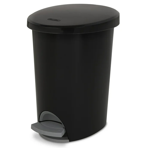 The Step-on wastebasket provides convenient step-on access for hands-free opening.