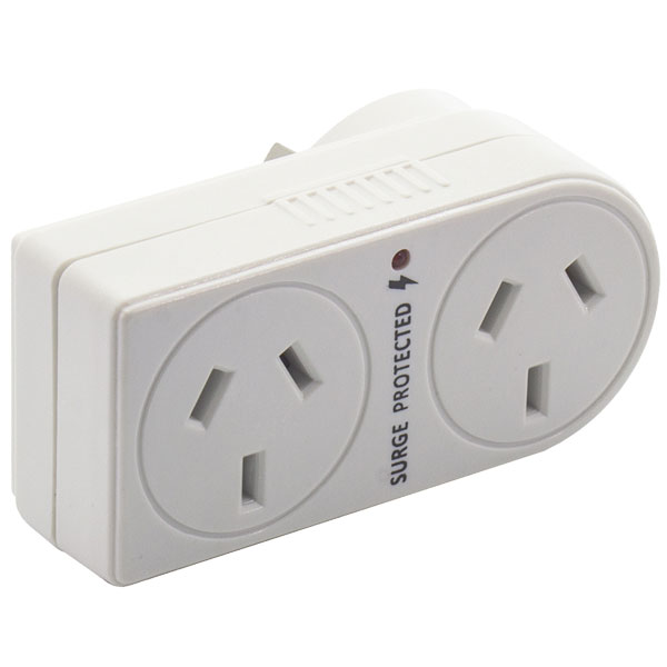 angled double adaptor allows two electrical items to be plugged into a single power outlet