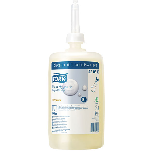 TORK 420810 S1 EXTRA HYGIENE LIQUID CREAM HAND SOAP CARTRIDGE 1 LITRE