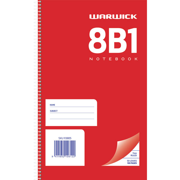 WARWICK 8B8 EXERCISE BOOK 7MM RULED SPIRAL BOUND A4 50 LEAF